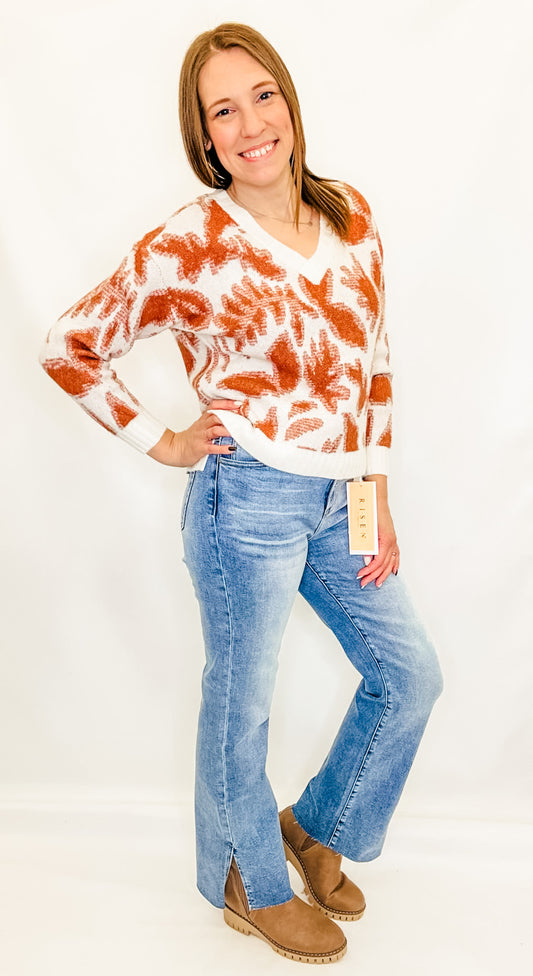 Charlie B Terracotta Rust Bell Bottom Pants with Frayed Asymmetrical Hem
