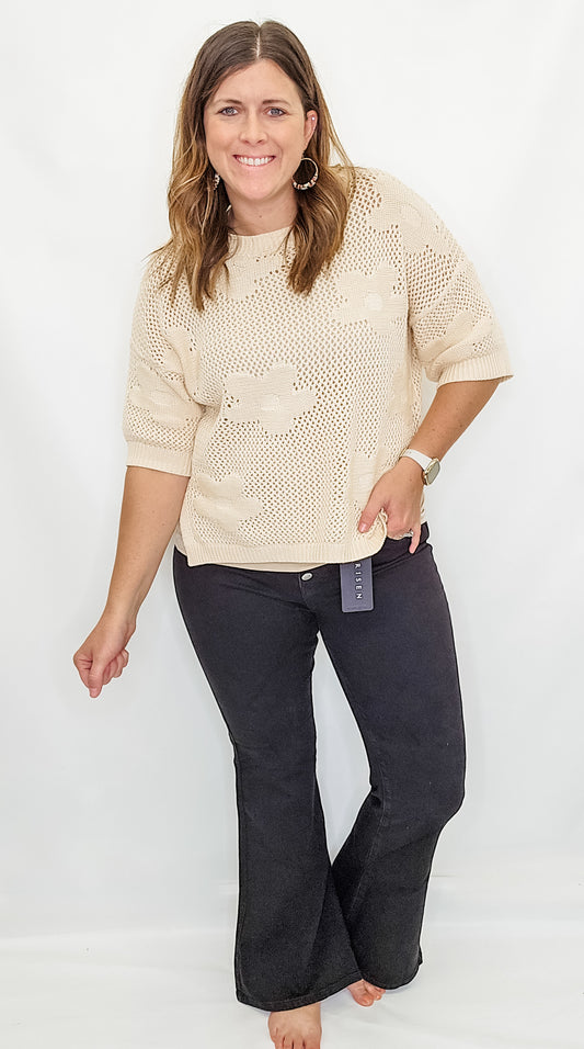 Risen Black Hi Rise Button Fly Flare Jeans - RDP1405