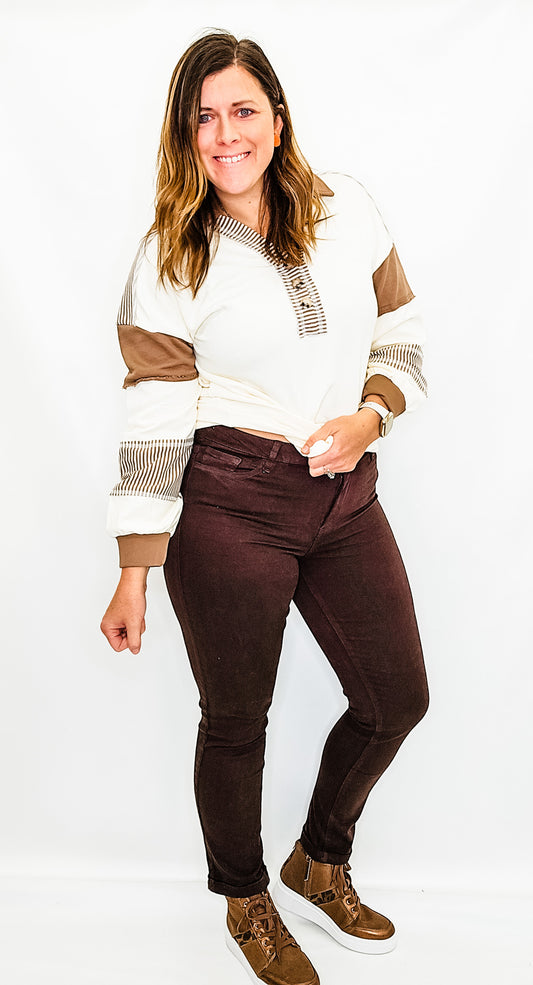 Charlie B Mocha Colored Twill Jeans with Hem Cuff