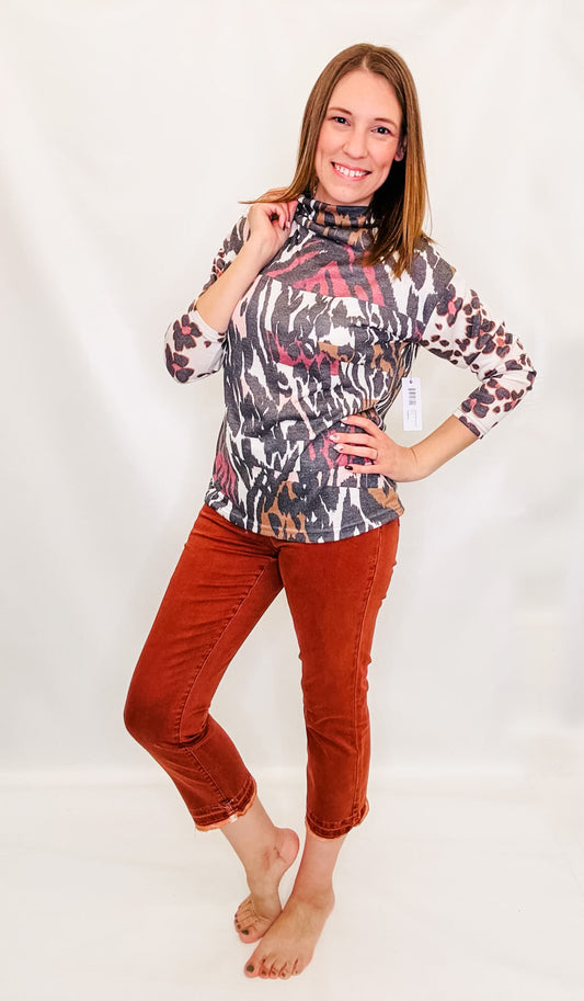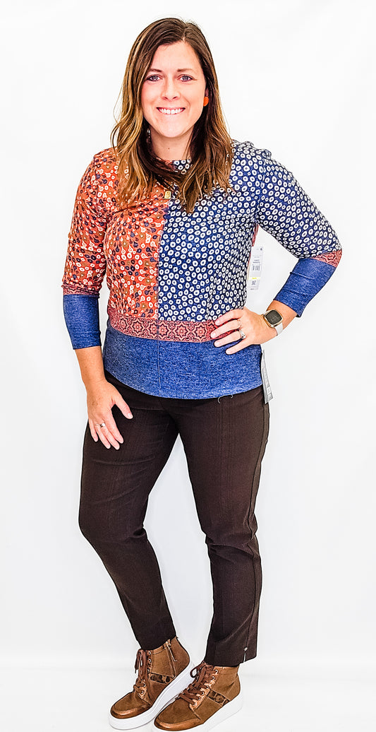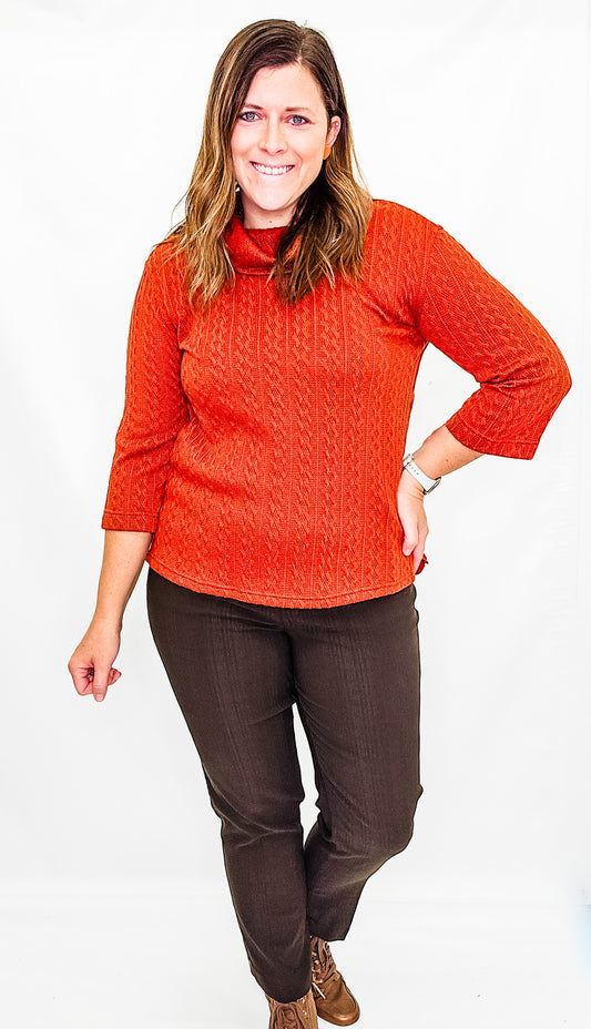 Multiples Cinnamon 3/4 Sleeve Cowl Neck Top