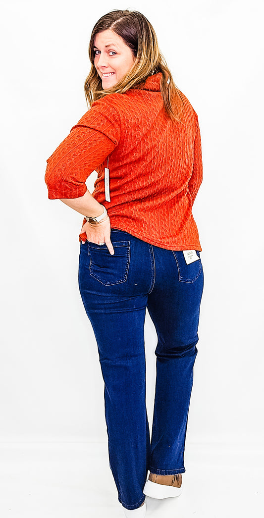 Tribal Sophia Curvy Micro Flare Crop in Marsala Rust