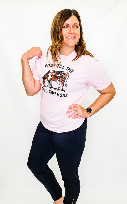 Pray Till The Cows Come Home Lt Pink Graphic Tee