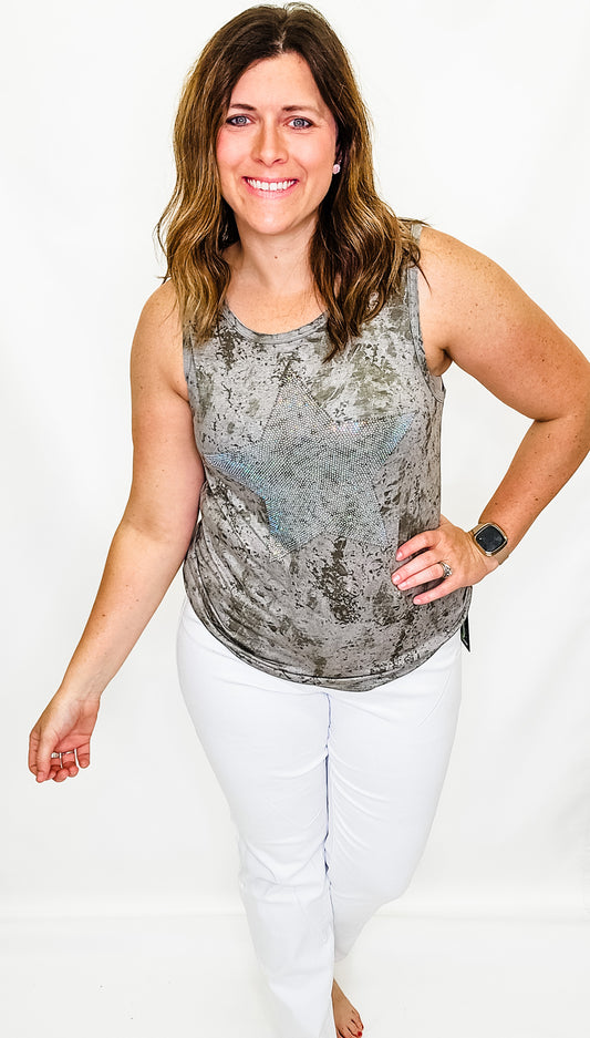 Vintage Olive Star-Studded Tank