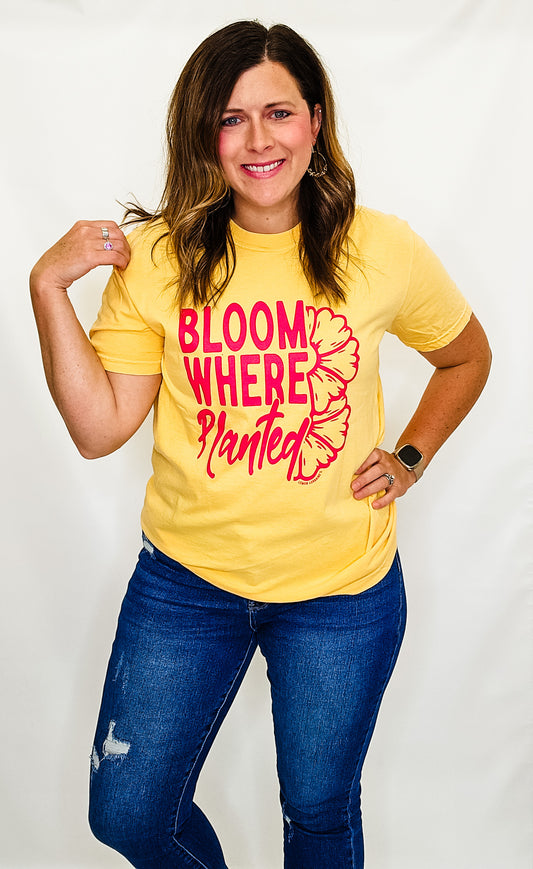 Bloom Where Planted, Yellow Graphic Tee