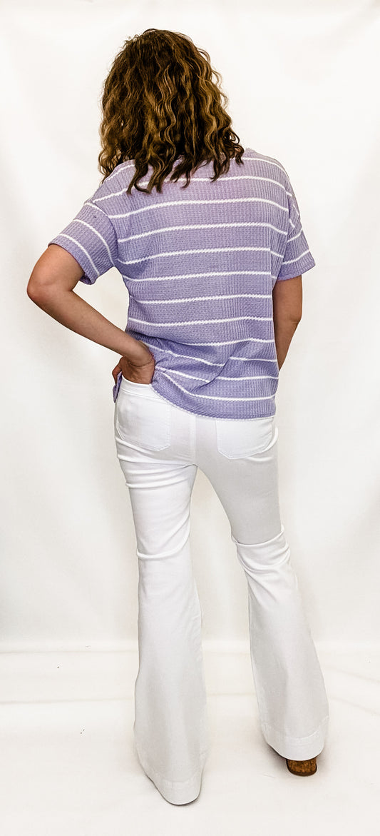 Lavender Waffle-Knit Striped Short Sleeve