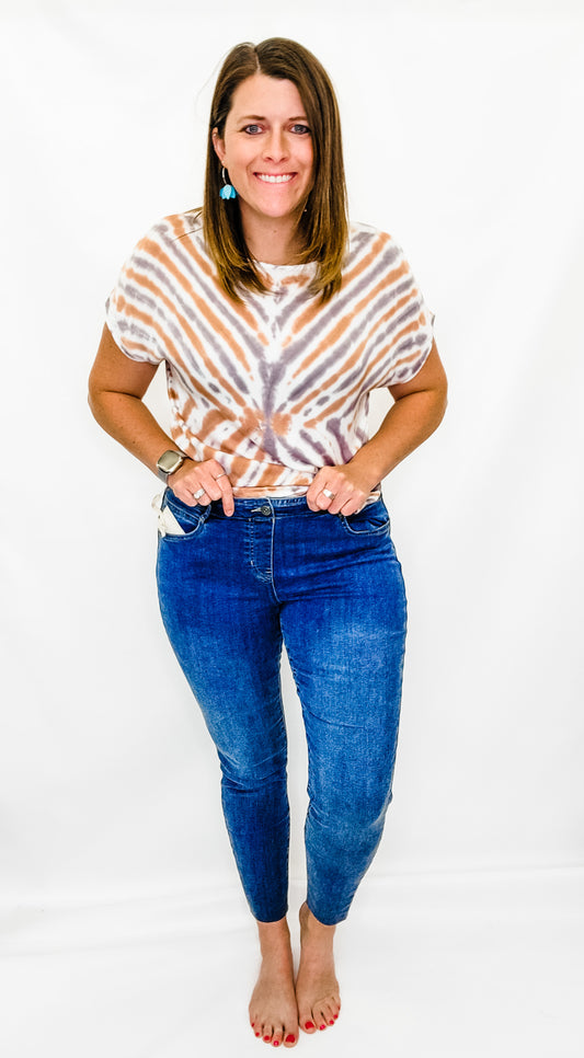 Slim-Sation by Multiples Navy Ankle Pant with Scalloped Hem