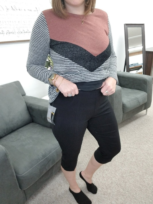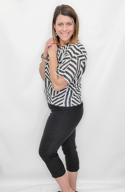 Charlie B Black Pull-On Stretch Cropped Cuffed Pant