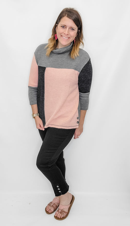 Multiples Black Pull-On Jean with Button Fringe Hem