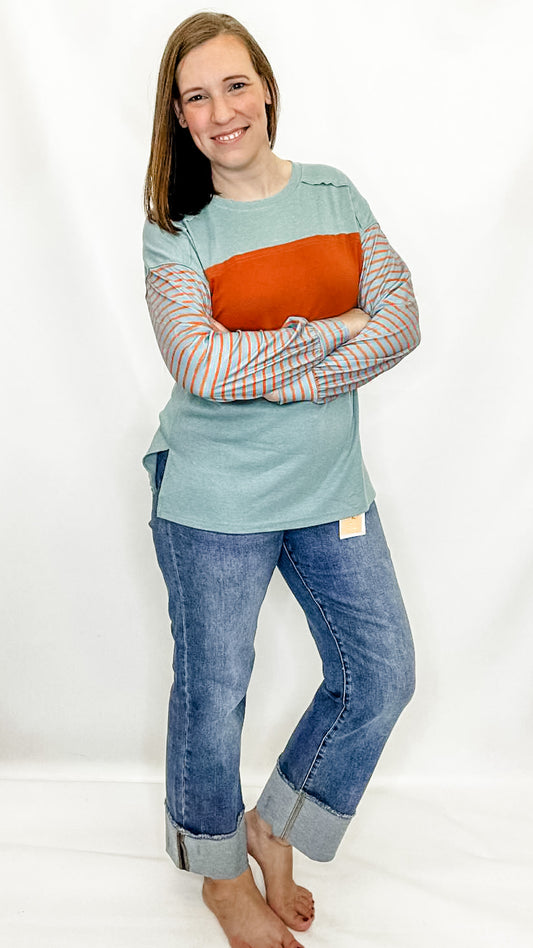 Orange Plaid and Khaki Long Sleeve Top - Ext Sizes