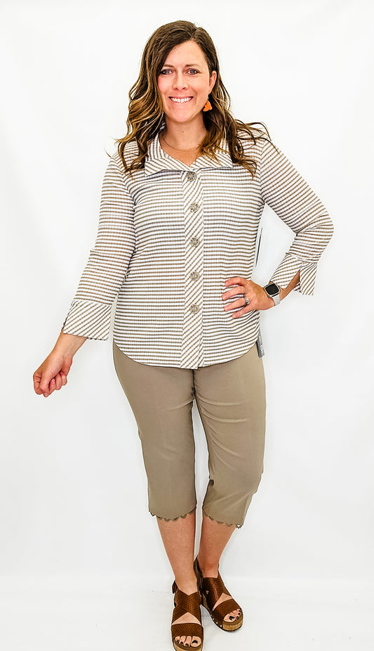 Multiples Stone & White Striped Collared Top