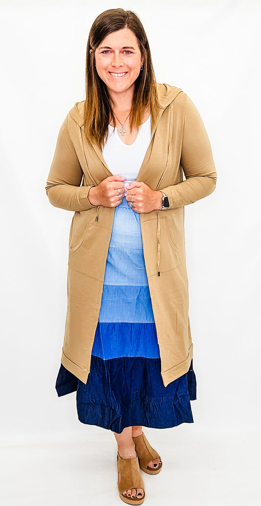 Camel Knit Duster Cardigan with Hood