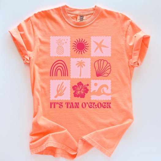 It's Tan O'Clock Neon Orange Graphic tee