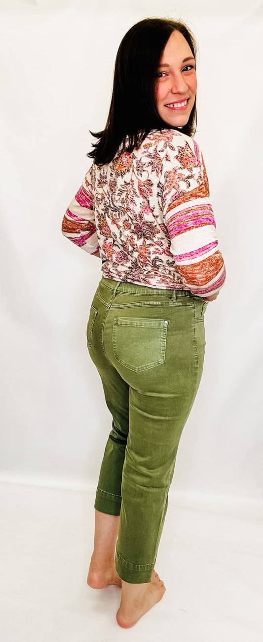 Tribal Loden Olive Pull-On Kick Flare Capri Pants
