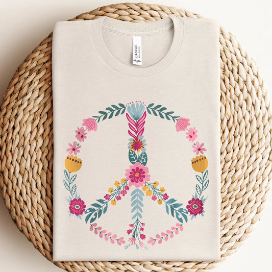 Floral Peace Sign Heather Oatmeal Graphic Tee