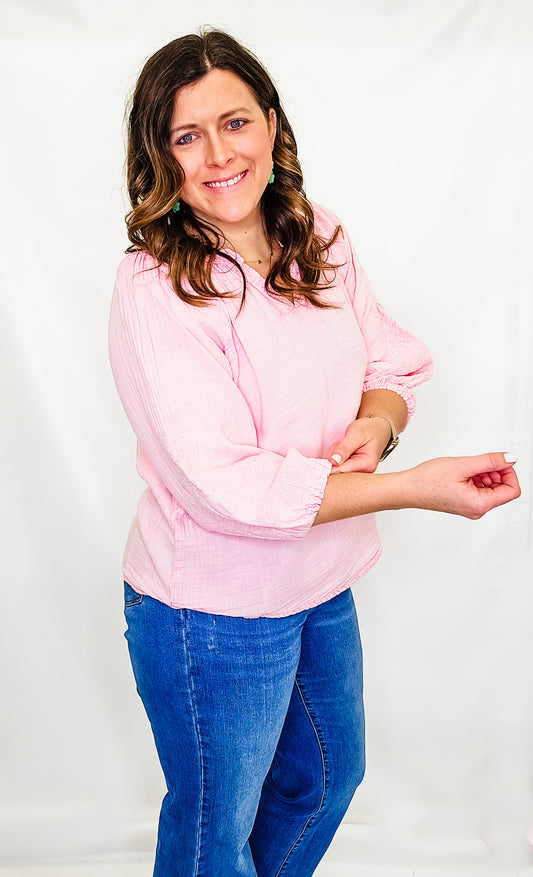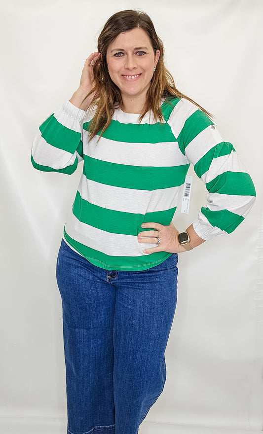 Charlie B Pastel Striped 3/4 Sleeve Sweater