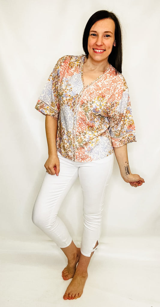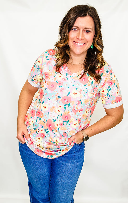 Coral & Yellow Floral Short Sleeve - Extended Sizes