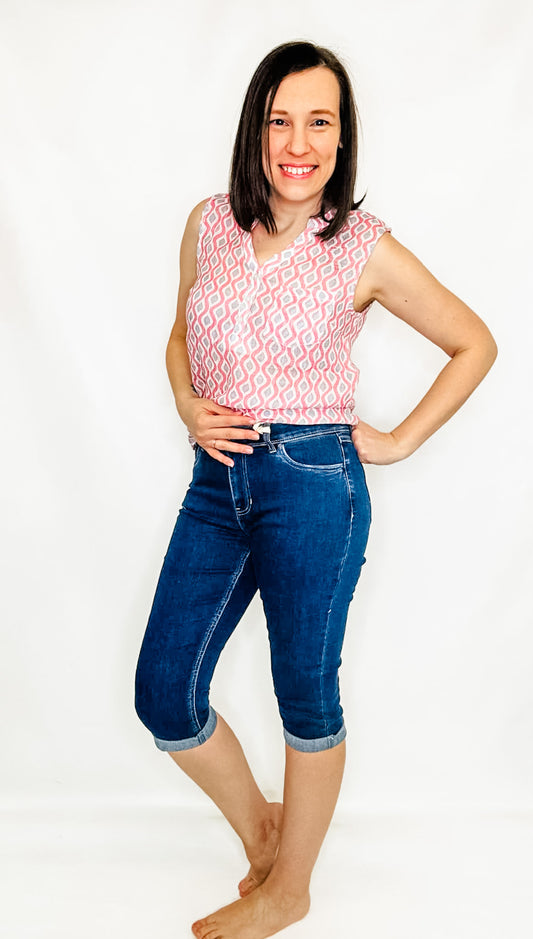 Charlie B Pink & Blue Waves Sleeveless Tank