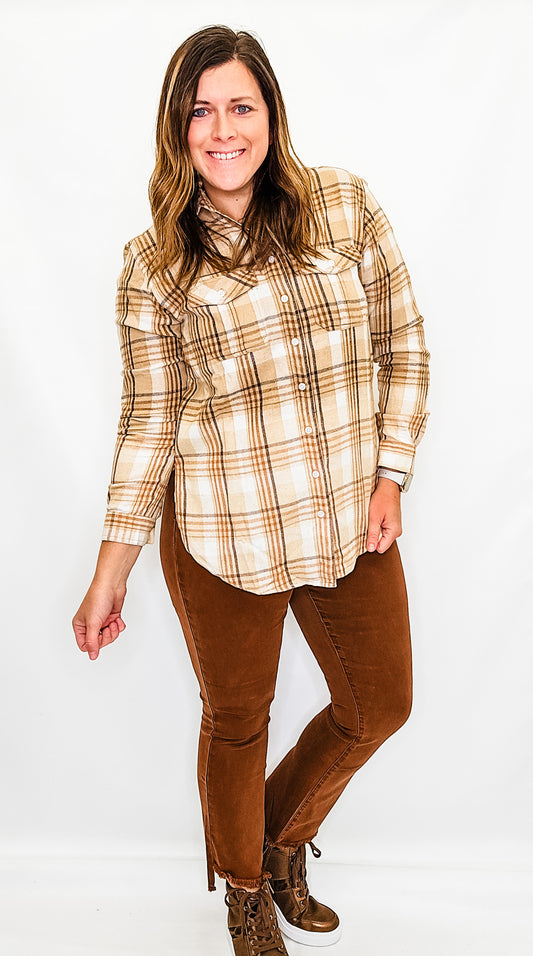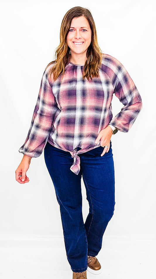 Charlie B Plaid Blouse with Front Knot - Variety