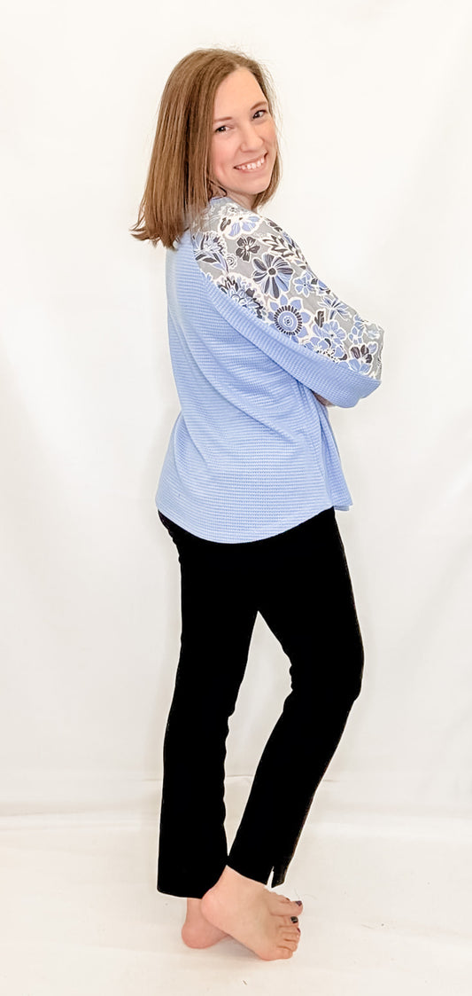 Multiples Cornflower Blue & Floral 3/4 Sleeve Top