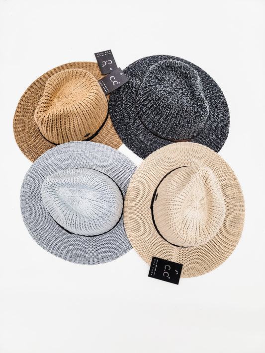 C.C. Knit Fedora Hat with Leather Bands - Variety