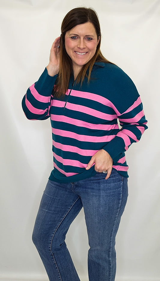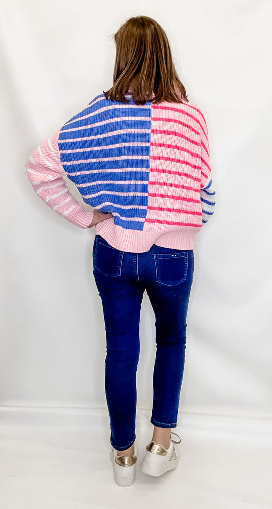 Multiples Cornflower Blue Stripe 3/4 Sleeve Top