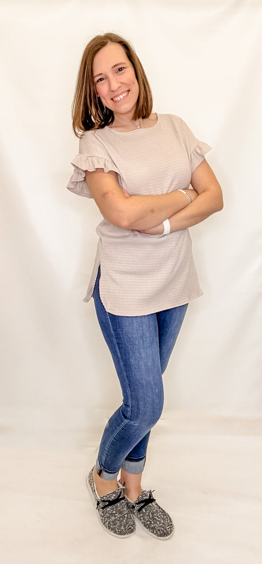Multiples Cornflower Blue, 3/4 Sleeve Tulip Hem Top