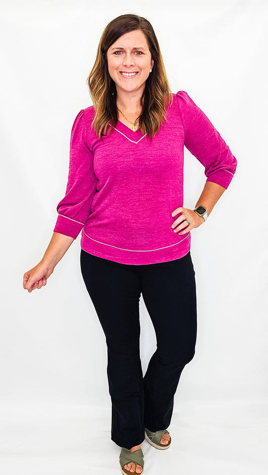 Magenta Knit V-Neck Top