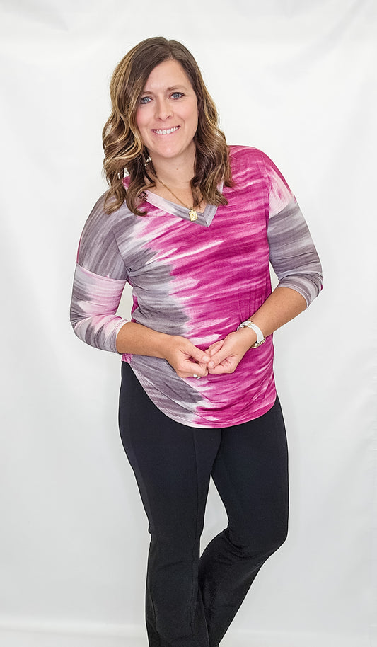 Magenta Mauve Lizzy Printed 3/4 Sleeve Top
