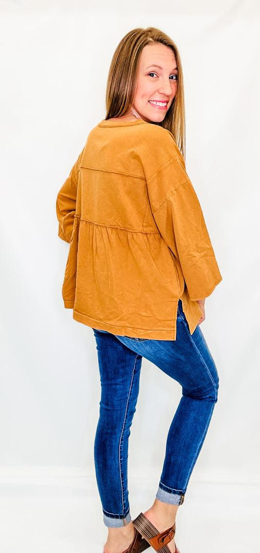 Camel Terry Knit Peplum Top