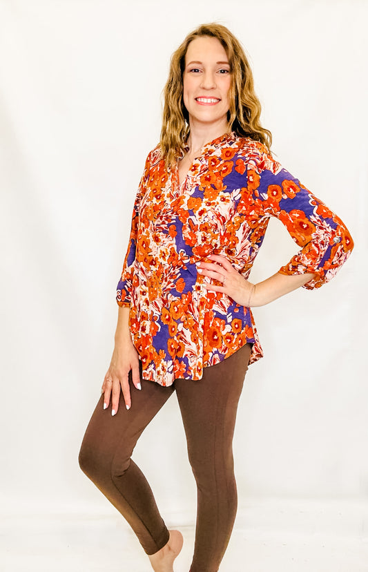 Plum Rust Lizzy Printed 3/4 Sleeve Top