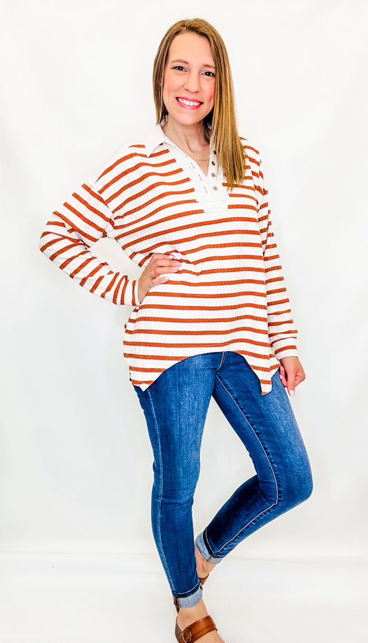 Cream & Rust Stripes Top with Collar
