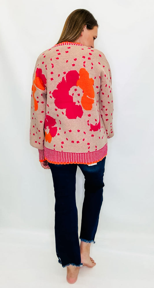 Beige, Hot Pink & Orange Flower Sweater