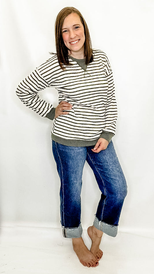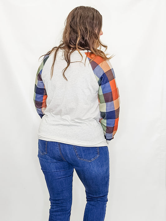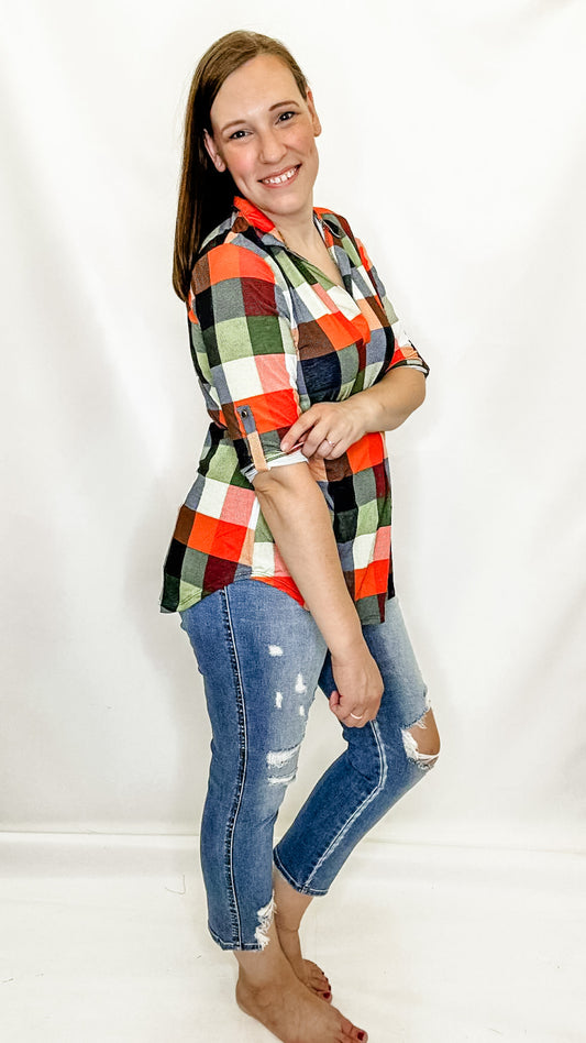 Orange Plaid and Khaki Long Sleeve Top - Ext Sizes