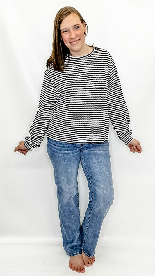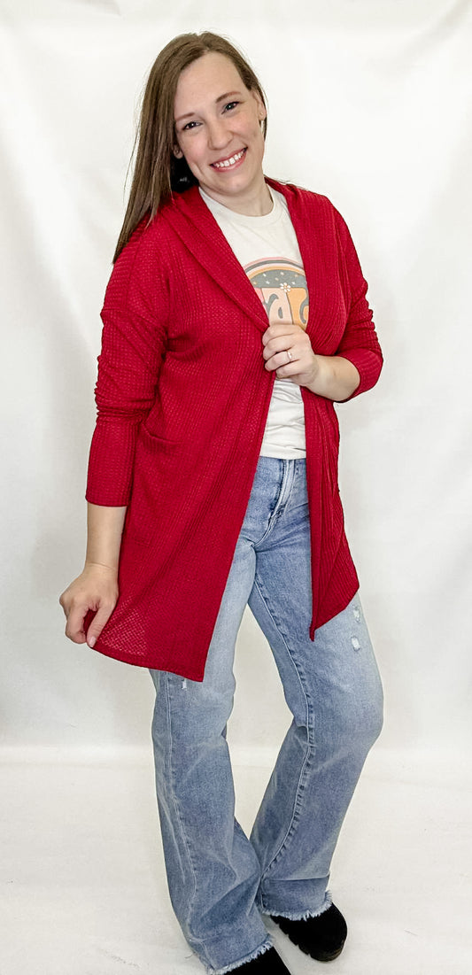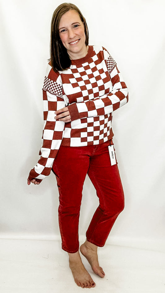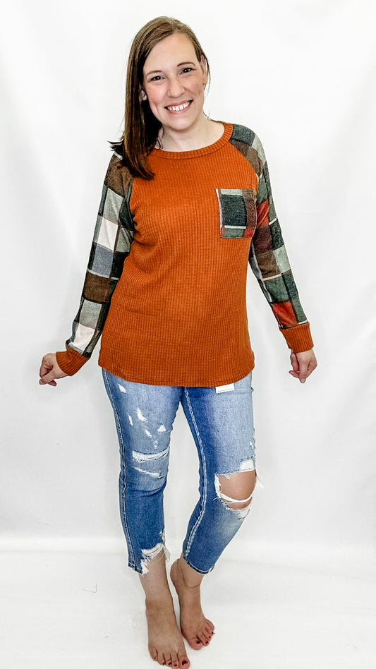 Orange Plaid and Rust Waffle Knit Long Sleeve Top