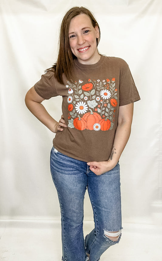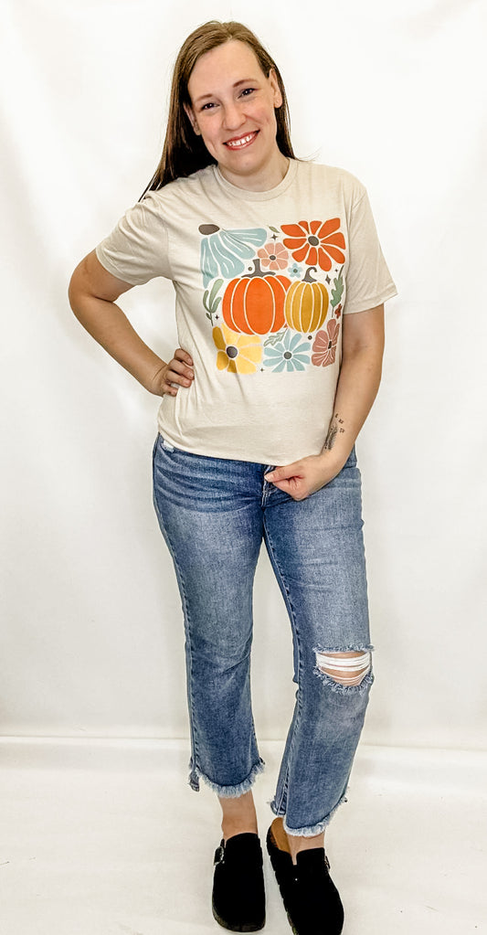 Bright Fall Floral Pumpkins Cream Graphic Tee