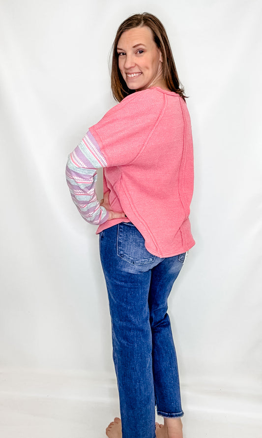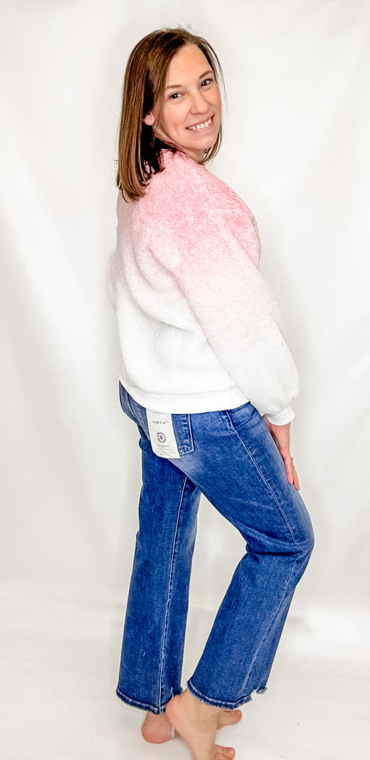 Pink Soft Fleece Warm Cozy Ombre Knit Top