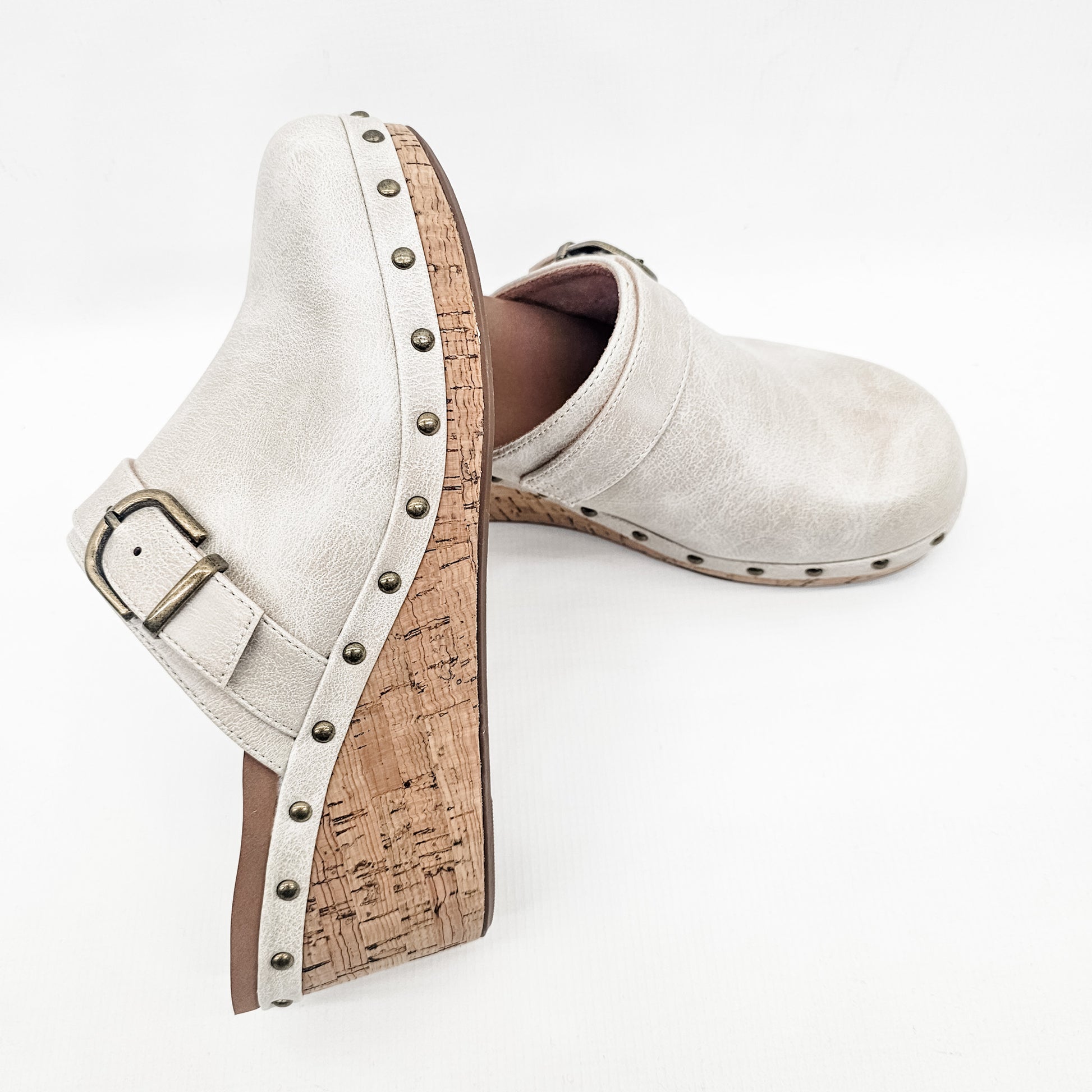 Hello adorable! We love this ivory mule wedge, because it's a great color that will go with everything, it's comfy with that cushion from Corkys, and it will elevate your favorite look from fine to fab!
