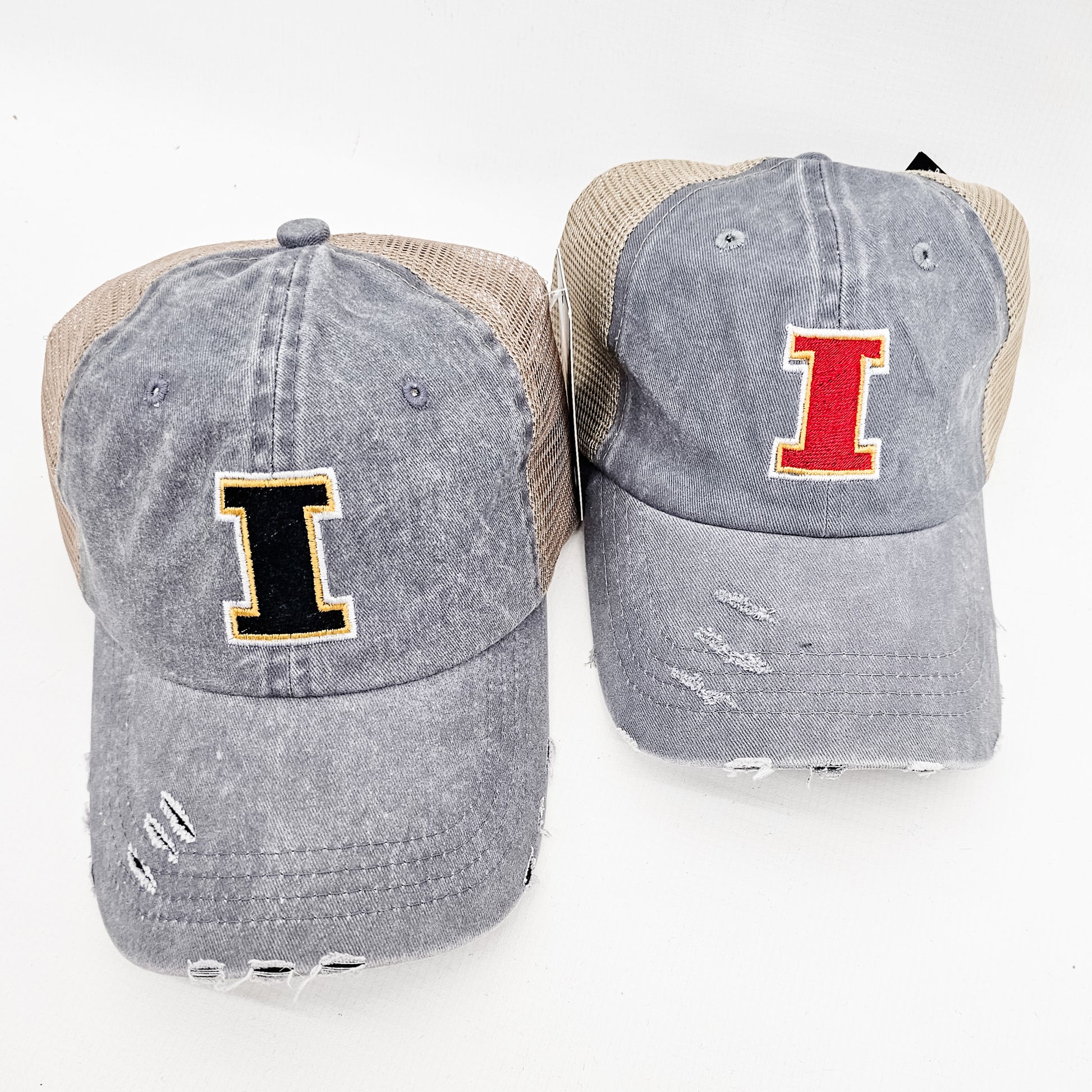 Iowa or ISU Gray Mesh Caps