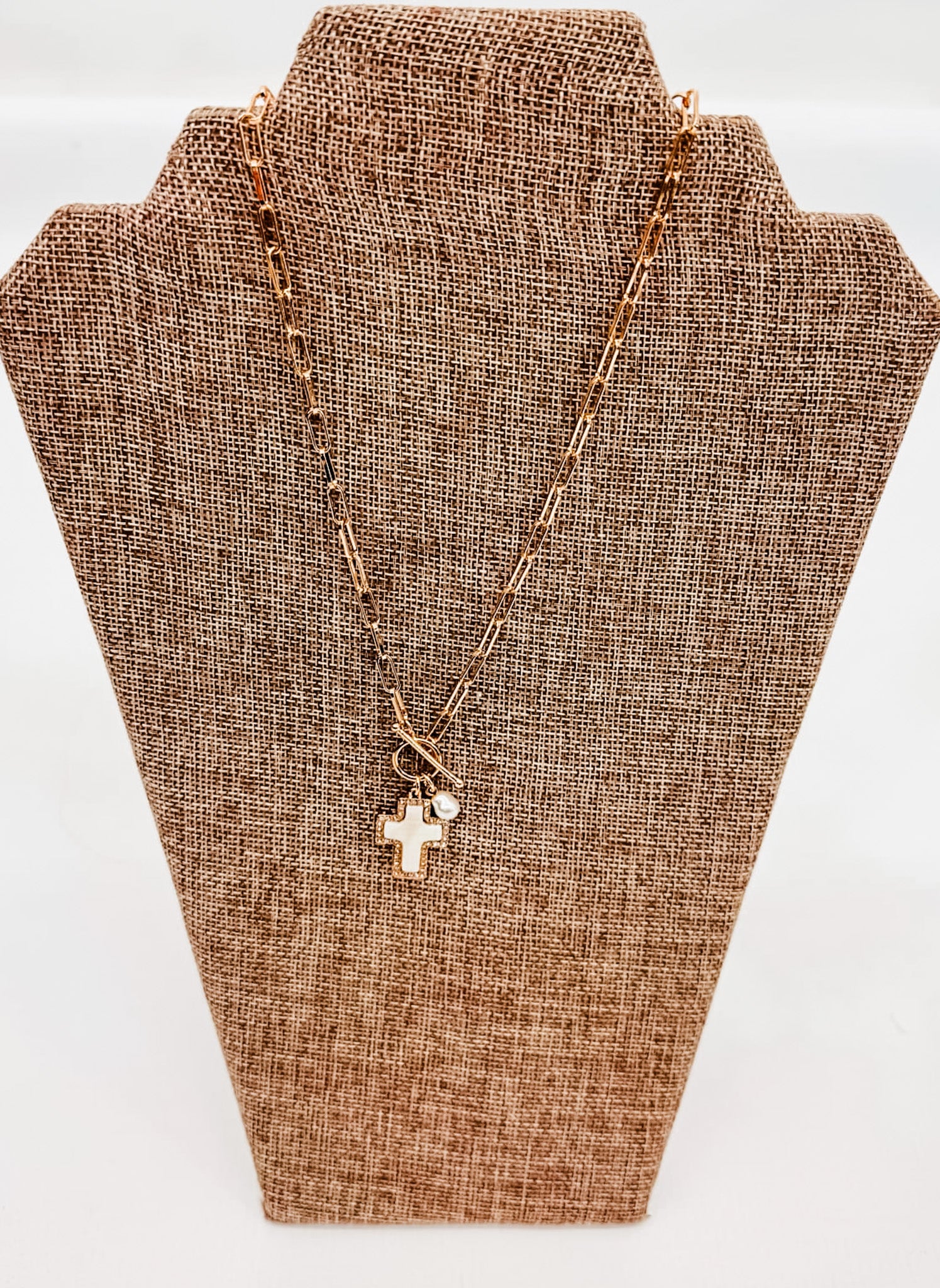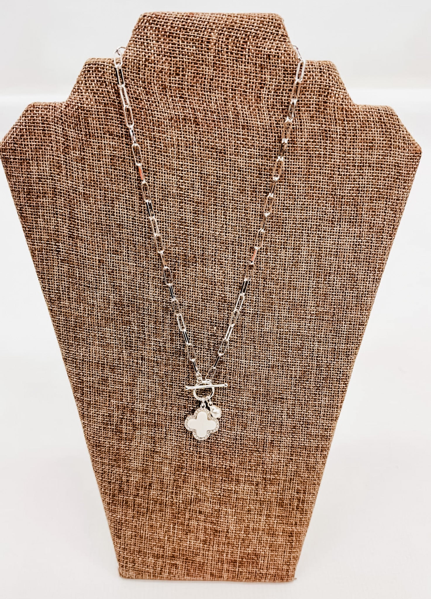A great, front-toggle necklace with some meaning -- the cross or the clover!