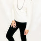 A cream sweater in Fall and Winter is a classic look, especially paired back to black jeans like Jamie has done here! Easily wear this to a casual or dressy event in that sense!